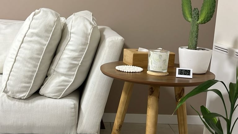 Acontece em uma clínica acolhedora e confortável, com ambiente pensado para receber você com calma, privacidade e cuidado — com sofás, iluminação suave e um espaço que convida à escuta.